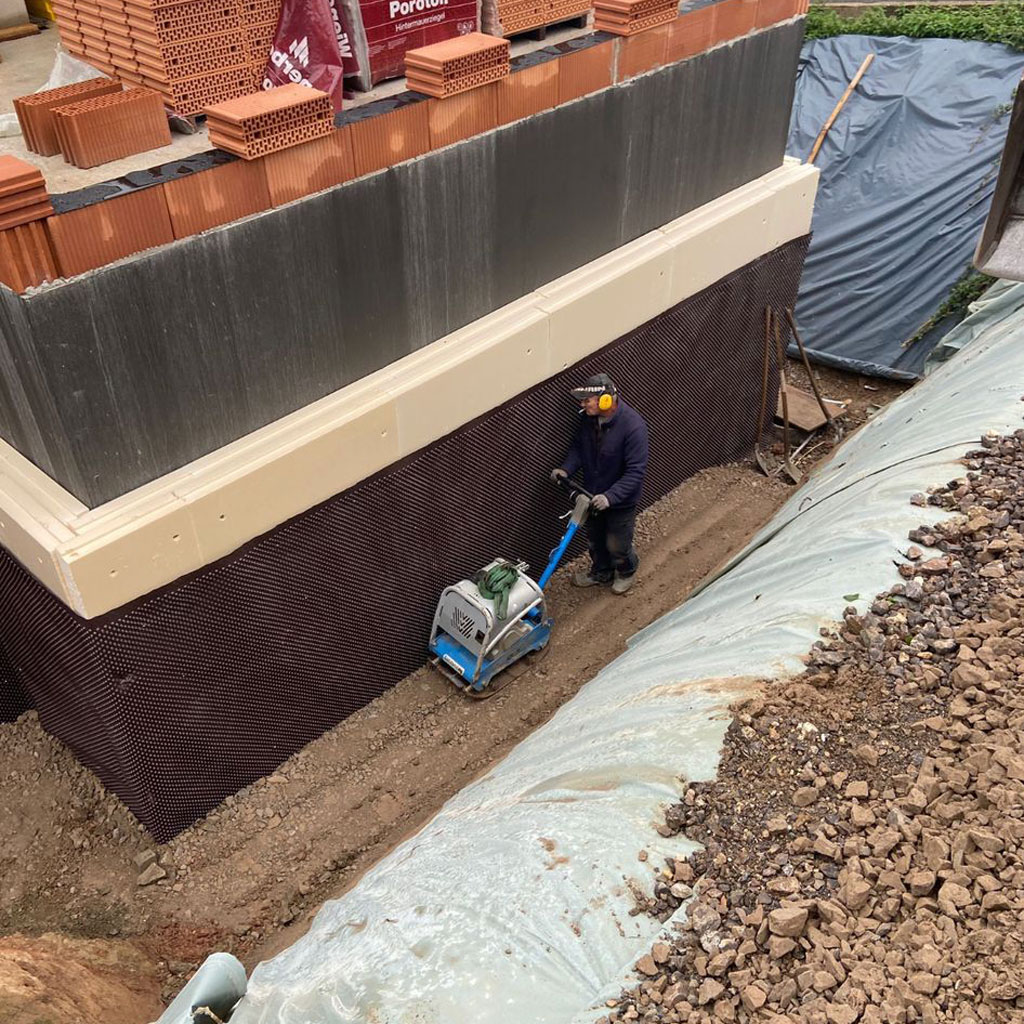 Wir bieten professionelle Kellerabdichtung und Feuchteschutz, einschließlich Außenabdichtung gegen drückendes Wasser sowie die Installation von Drainagesystemen zur effektiven Abdichtung von Kellerwänden.